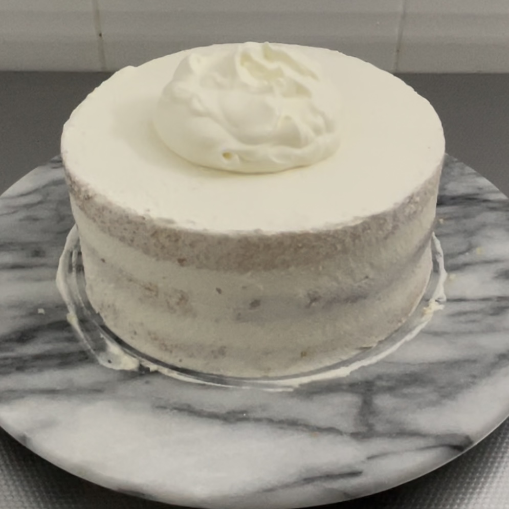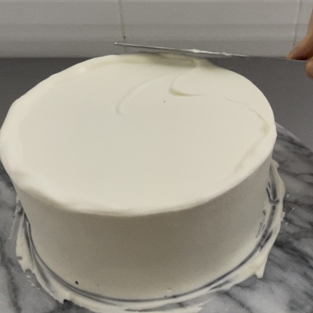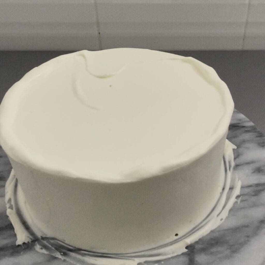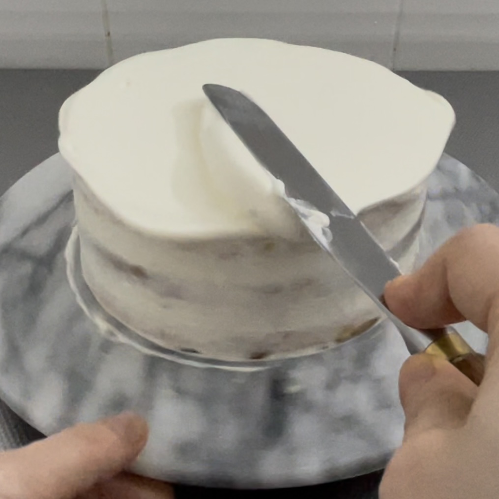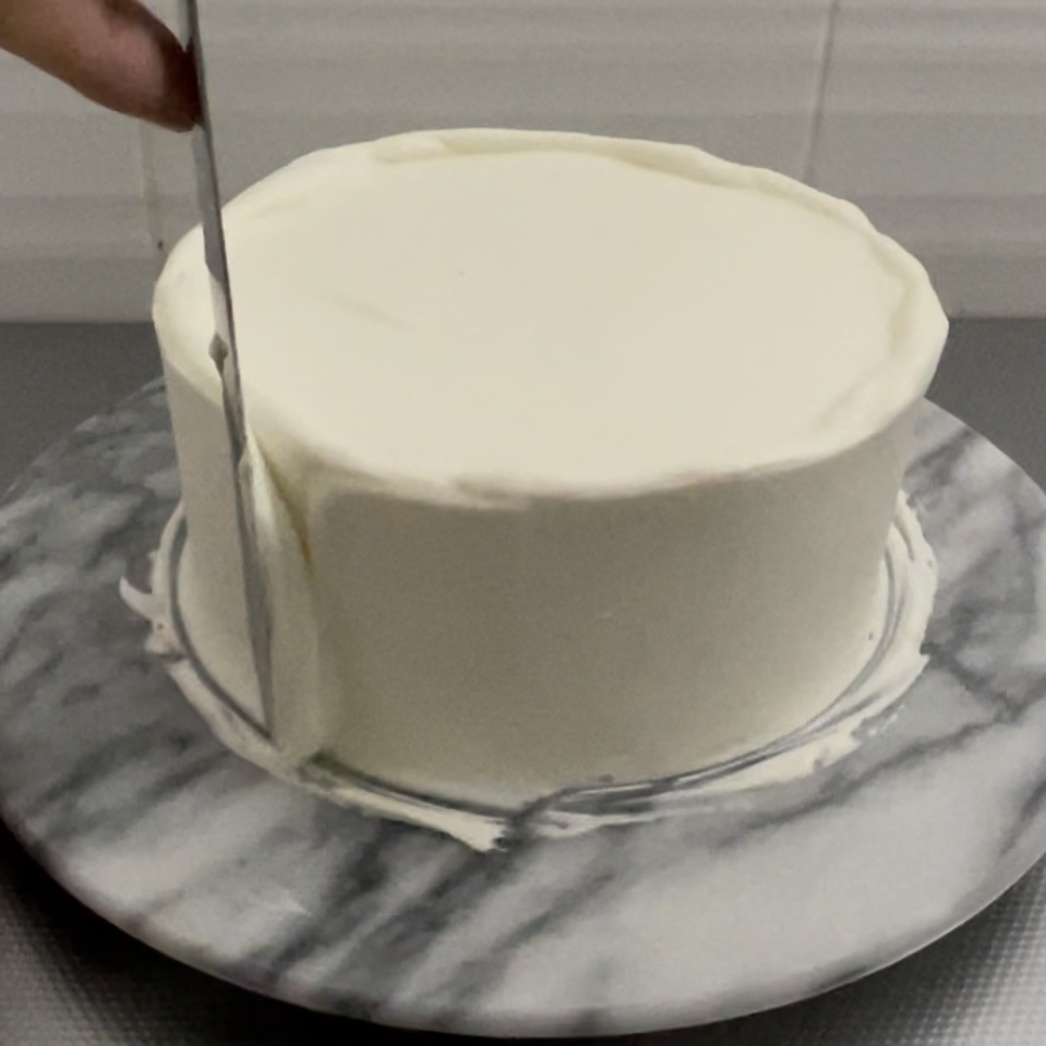 仕上げのクリームの状態が見た目の綺麗さに直結するので、仕上げ塗りに失敗してボソボソになってしまったら、一度冷蔵庫で固めて緩いクリームで再度薄くナッペすると綺麗に見えます。