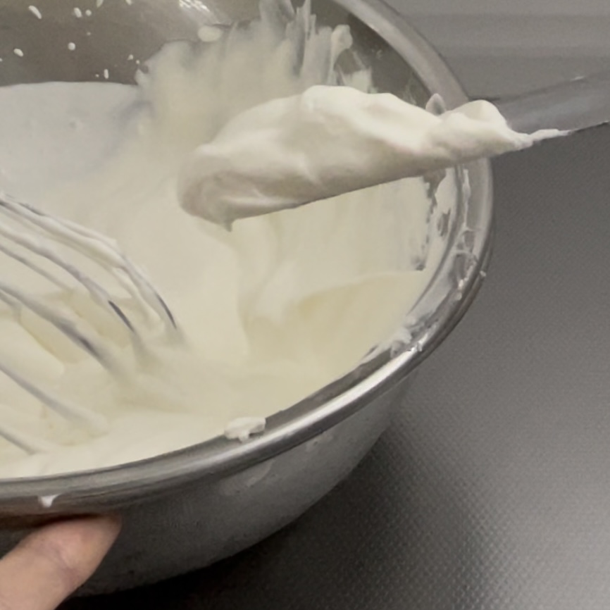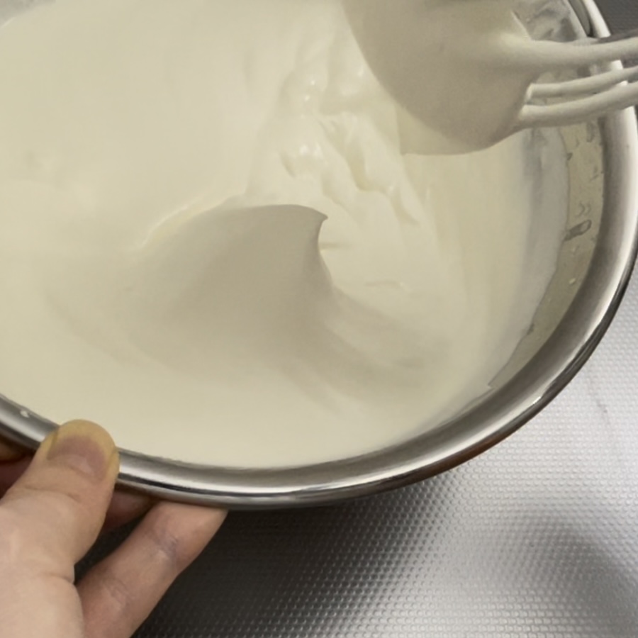 泡立て過ぎたら元の状態には戻らないので、緩めの綺麗なクリームをその都度必要分だけ泡立てます。