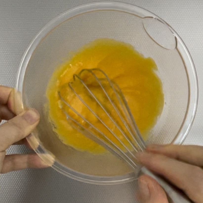 卵黄とグラニュー糖を白っぽくなるまですり混ぜます。