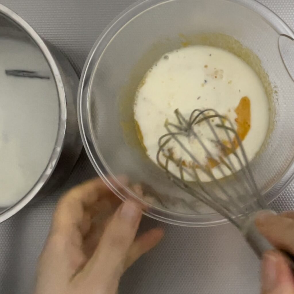 次回は、同じ卵黄を使うパータボンブベースのクリームを紹介します。