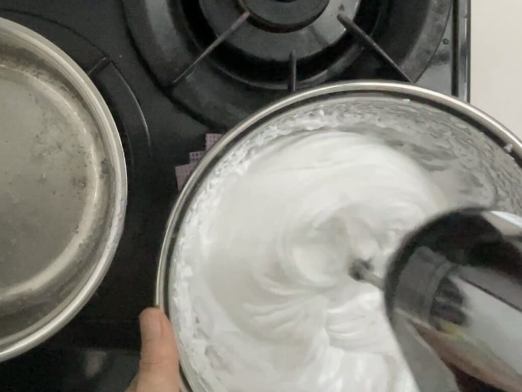 砂糖を増やす場合、シロップを入れる時のメレンゲは8分立てぐらいまで泡立てておいた方がいいです。