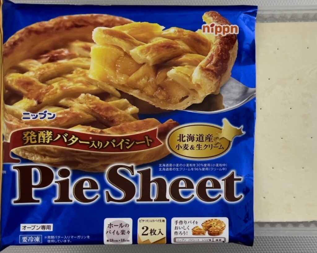 パイシートが分厚い場合は使う数時間前に冷蔵庫に移しますが、今回のニップンのものは薄いので、数分常温においておけば伸ばせる固さになります(解凍しすぎに注意)。