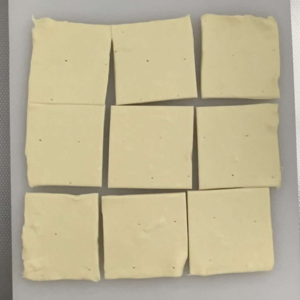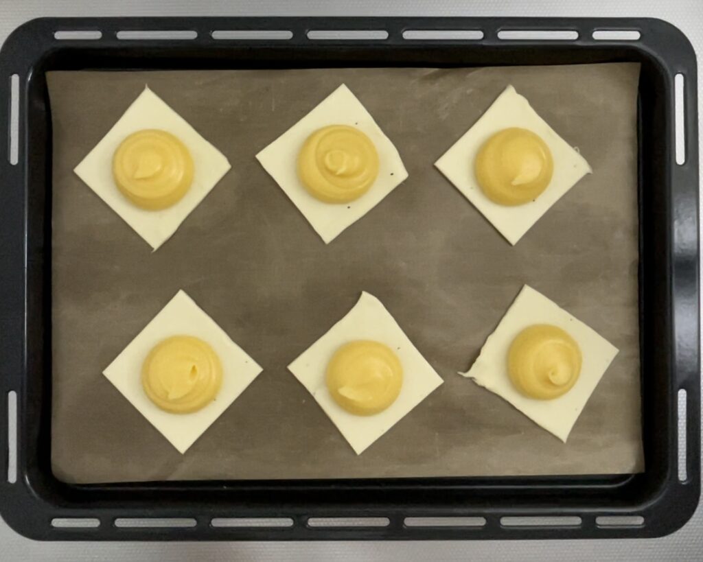 シュー生地を作るタイミングは、パイ生地カットが手早くできるなら①の前、余裕を持ちたいなら②のあとがいいです。