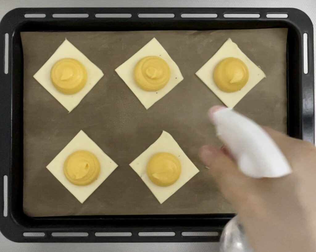 通常のシューを焼く時より焼き上がりが大きくなるので、十分に間隔をとってください。