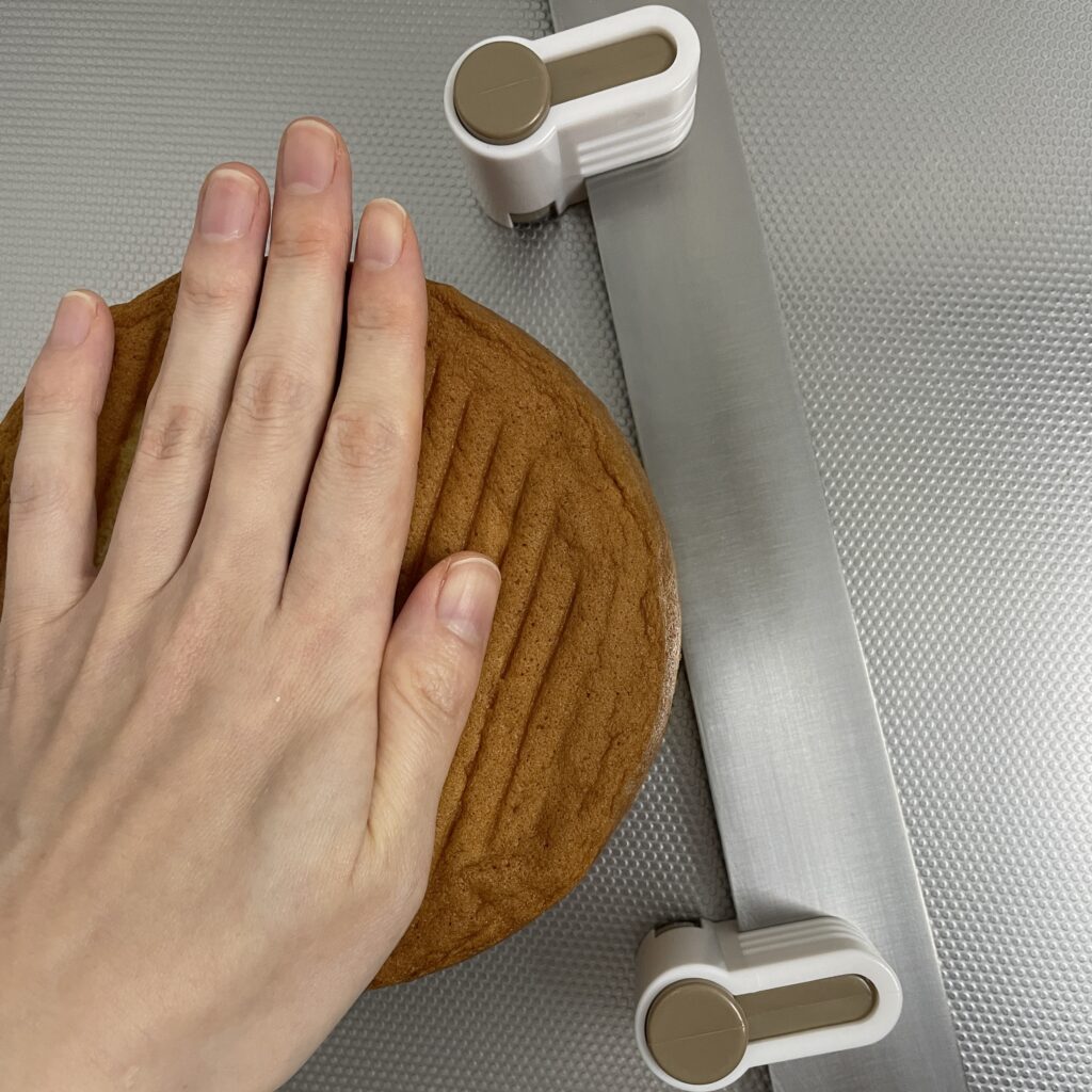 先ほどの補助具と同じようにジェノワーズを同じ厚さにスライスしたり、クッキー生地を均一な厚さに伸ばす時に使います。