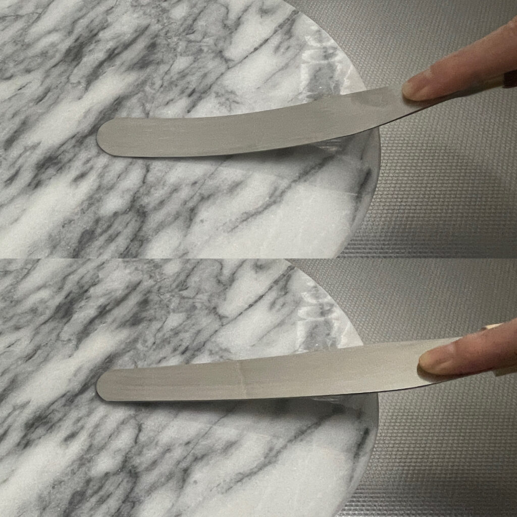 ただし高いパレットナイフと比べると、薄さやしなり具合に差があります。