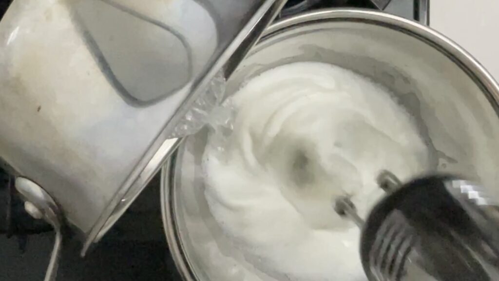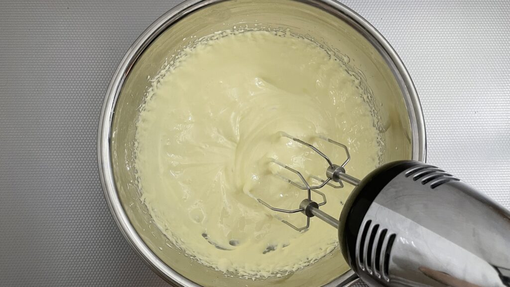イタリアンメレンゲベースのバタークリームのレシピと作り方です。家庭では難易度が高いですが、スタンドミキサーではなくハンドミキサーを使っています。 -