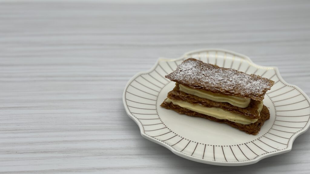 前回紹介したレシピで作ったパイ生地を使って、余り浮かせず平らに焼き上げるミルフィーユの作り方を紹介します。 -