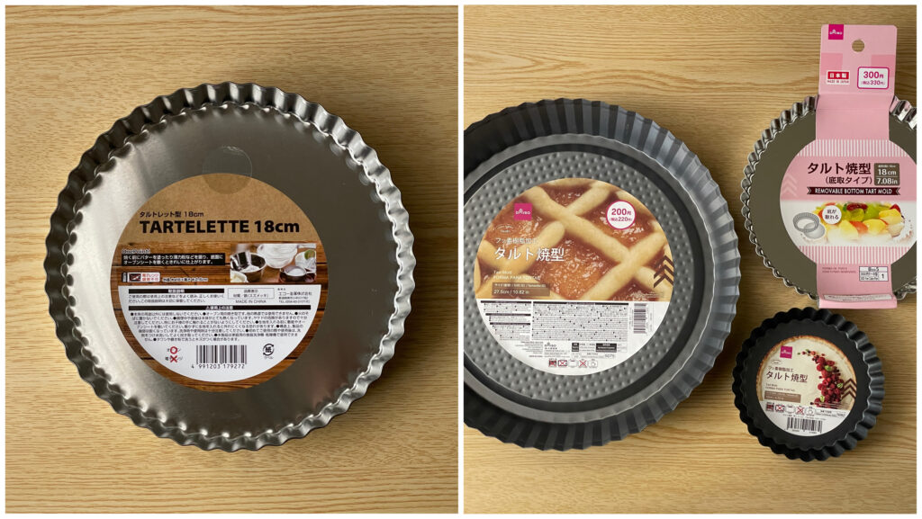 100均の製菓道具を検証する第7弾です。 ダイソーとSeriaで売っている4種類のタルト型を使い、専門店で買える型に比べてどれぐらいの仕上がりになるのか、アーモンドクリーム入りと空焼きで2パターンのタルトを焼いてみました。 -