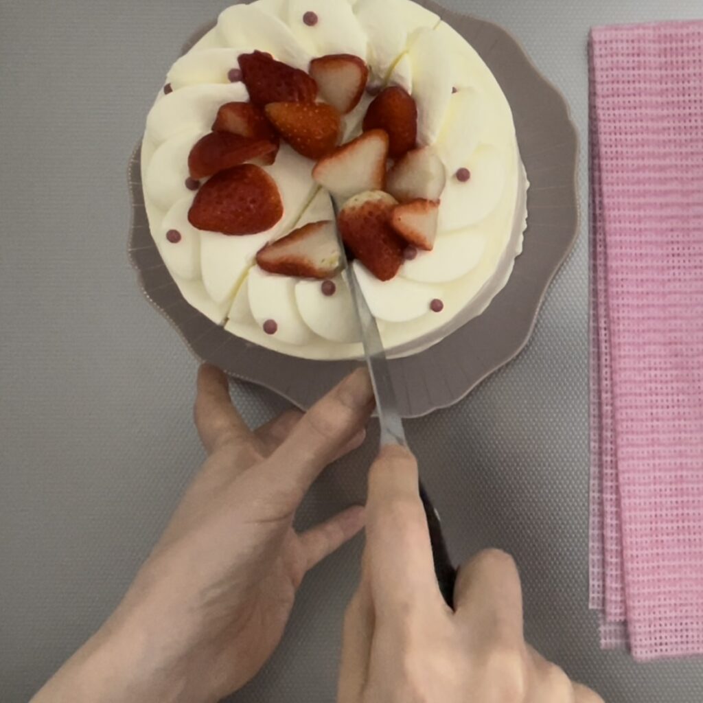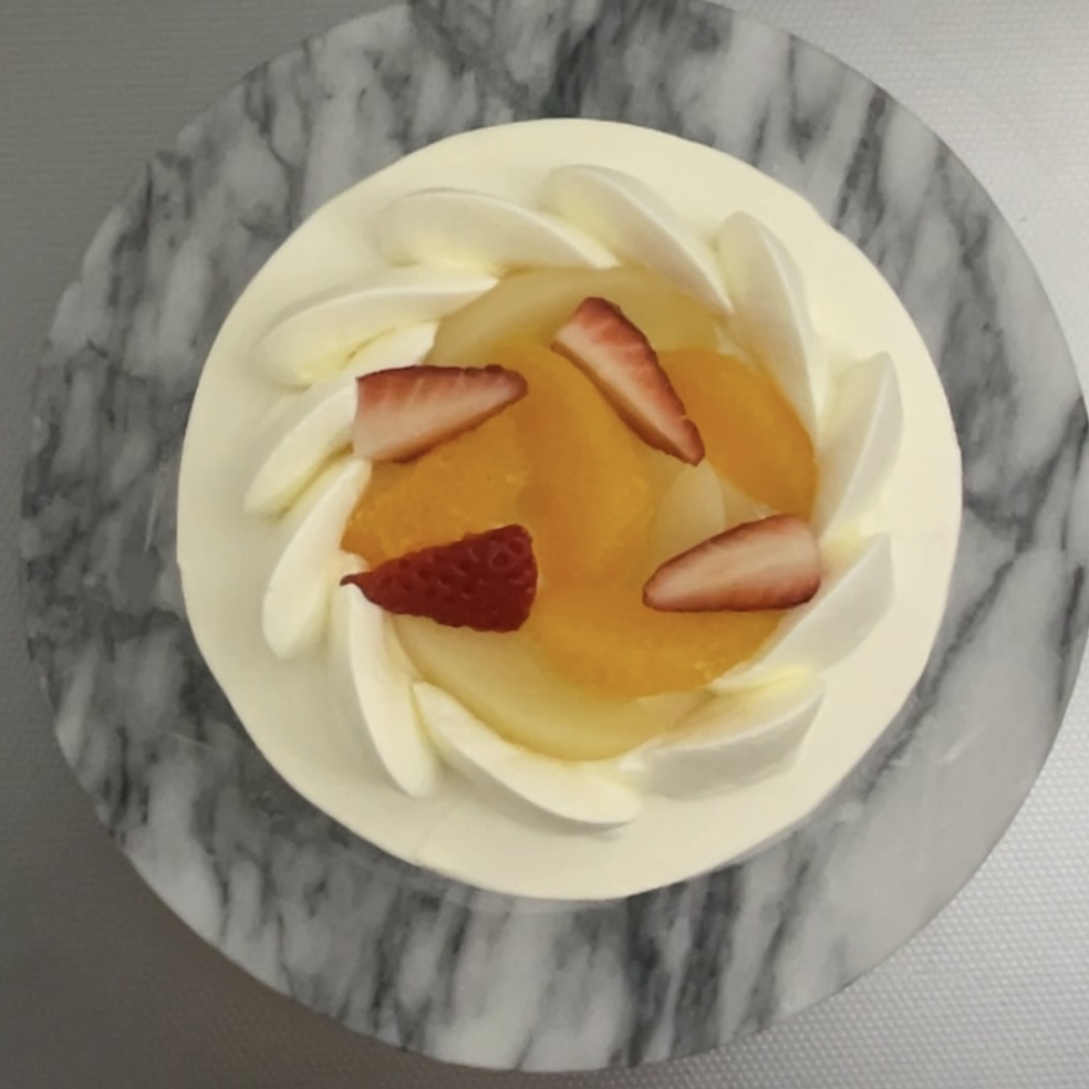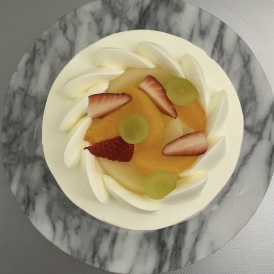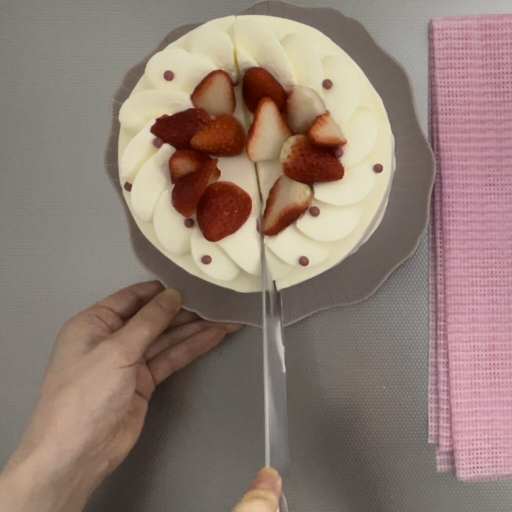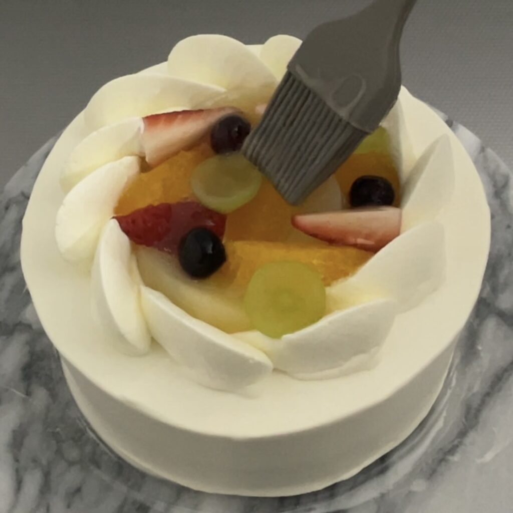 今回は、フルーツを飾って仕上げる段階と、ケーキをカットする方法を解説します。