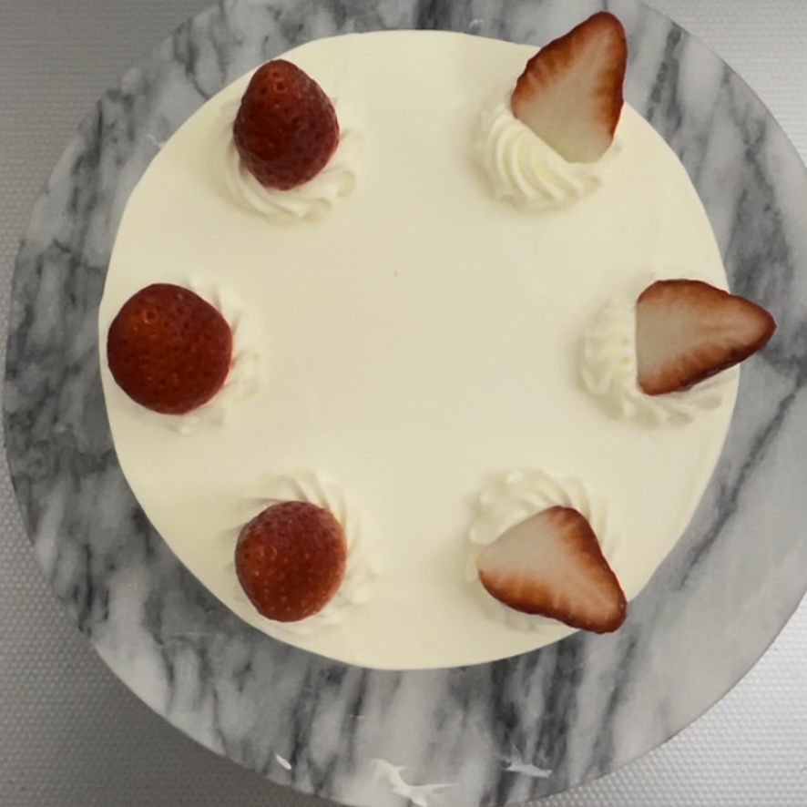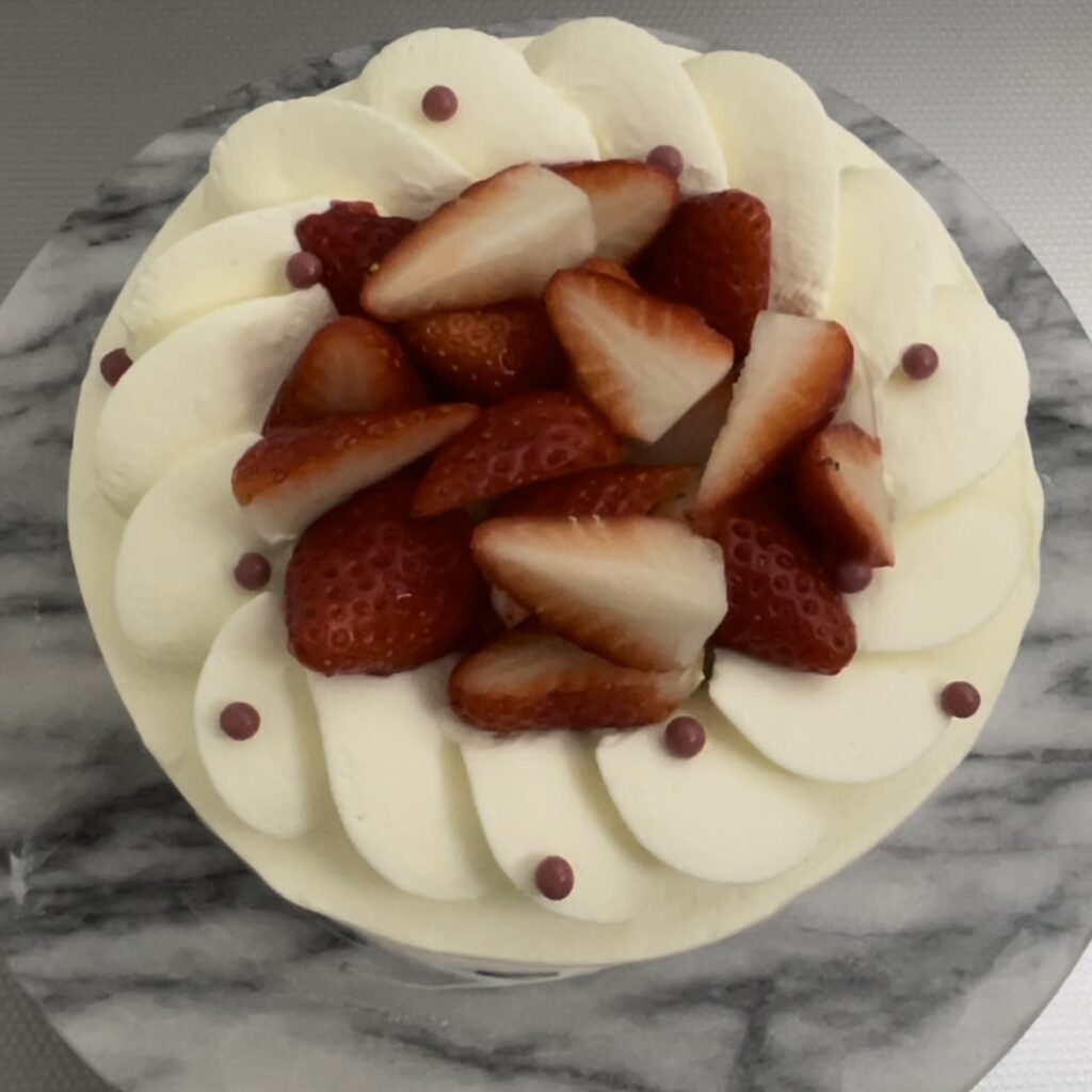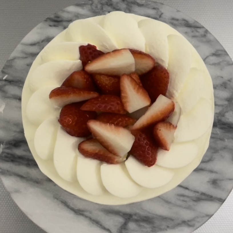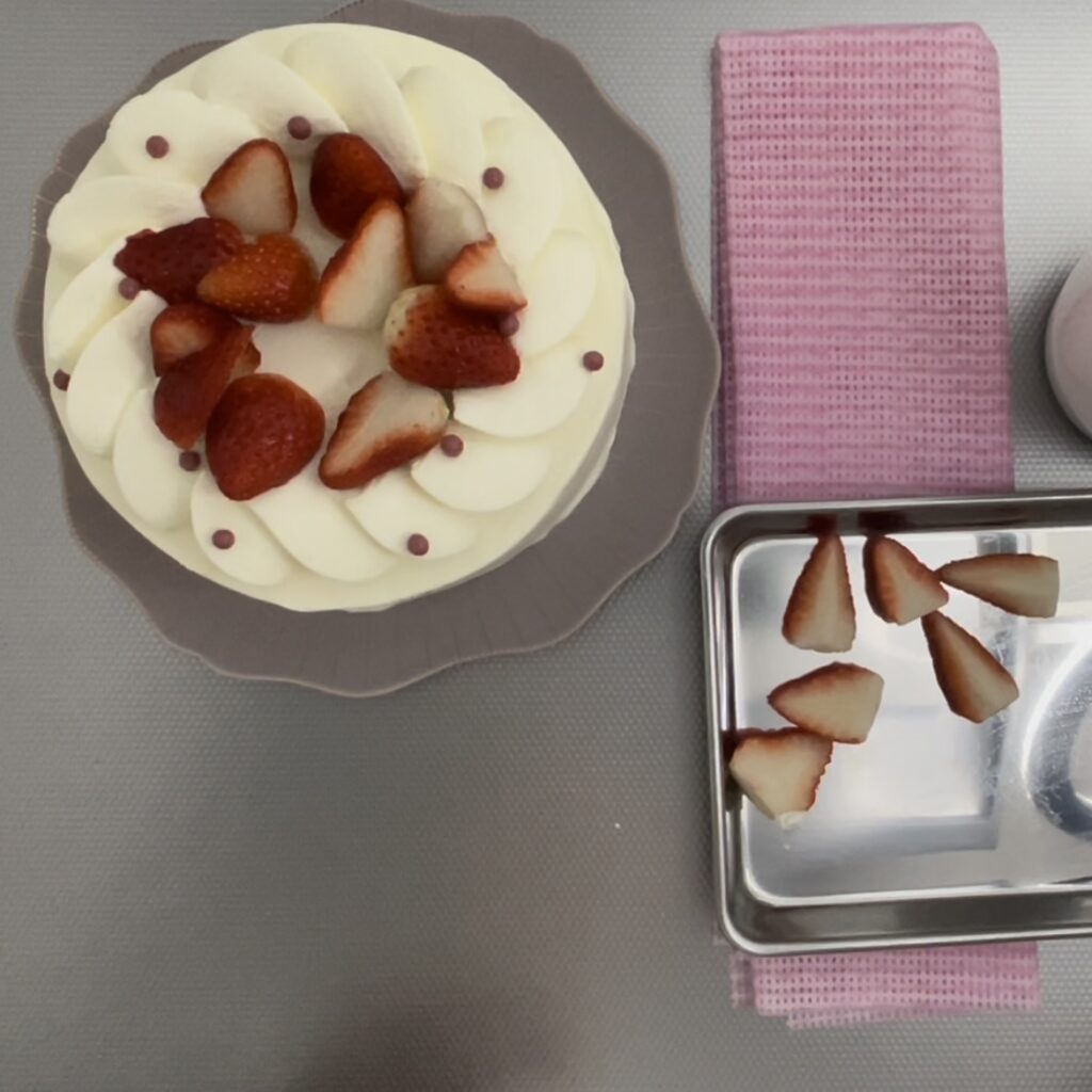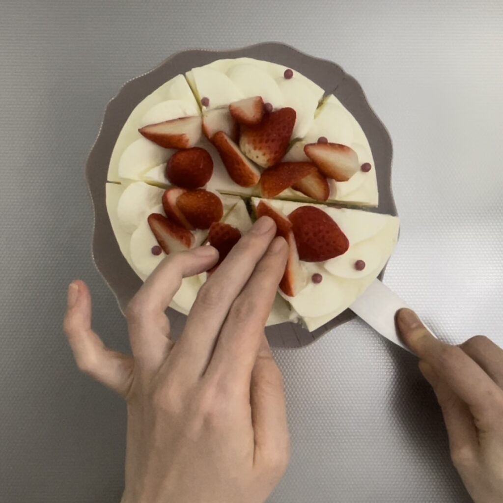 今回は、フルーツを飾って仕上げる段階と、ケーキをカットする方法を解説します。