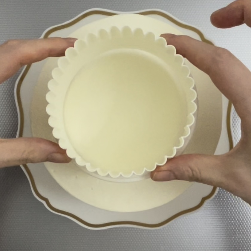 パレットナイフを底に差し込み、上面か側面に手を添えながら持ち上げます。