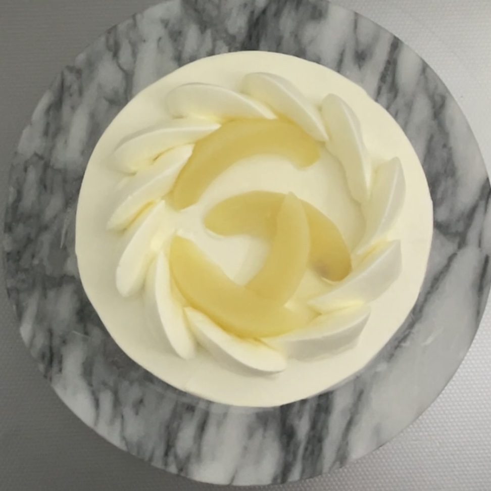 中心にフルーツを盛る場合は、ケーキの周囲にクリームを絞って土手を作ると崩れにくいです。